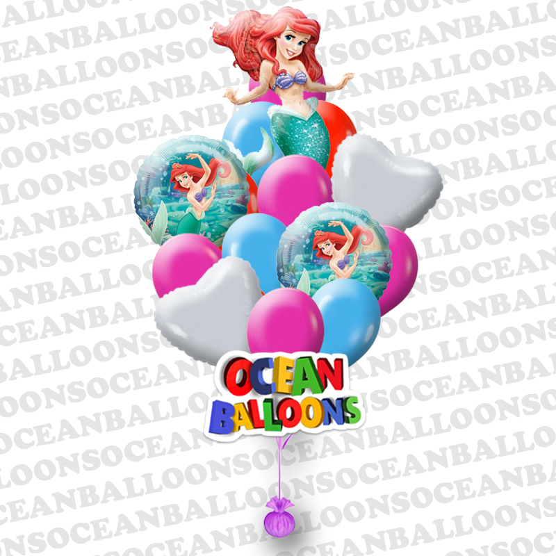 Букет "Русалочка" состоит из 16 латексных шаров, 2 фольгированных шаров-сердец, 2 фольгированных шаров с поздравлением и 1 фольгированной фигуры "Русалочка". Данный букет будет идеальным подарком для Вашей дочери!