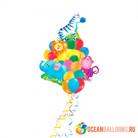 Букет «Веселые Звери» из 19 шаров в интернет-магазине OCEAN BALLOONS. Заказать с доставкой! Тел.: +7 (495) 773-43-75.