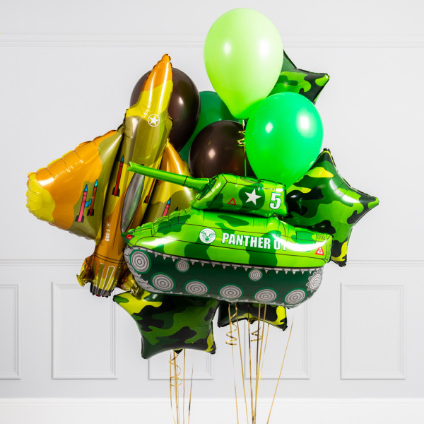 Композиция шаров на День защитника отечества «Самолет и танк» в интернет-магазине OCEAN BALLOONS. Заказать с доставкой! Тел.: +7 (495) 773-43-75.