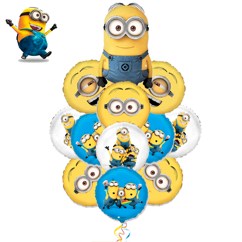 Букет миньоны из 9 шаров в интернет-магазине OCEAN BALLOONS. Заказать с доставкой! Тел.: +7 (495) 773-43-75.
