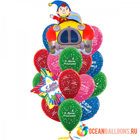 Букет "Весельчак" из 20 шаров, состоящий из 1 фольгированных звезд, 17 латексных шаров с принтом и одной фольгированной фигуры, будет прекрасным подарком для вашего весельчака!
