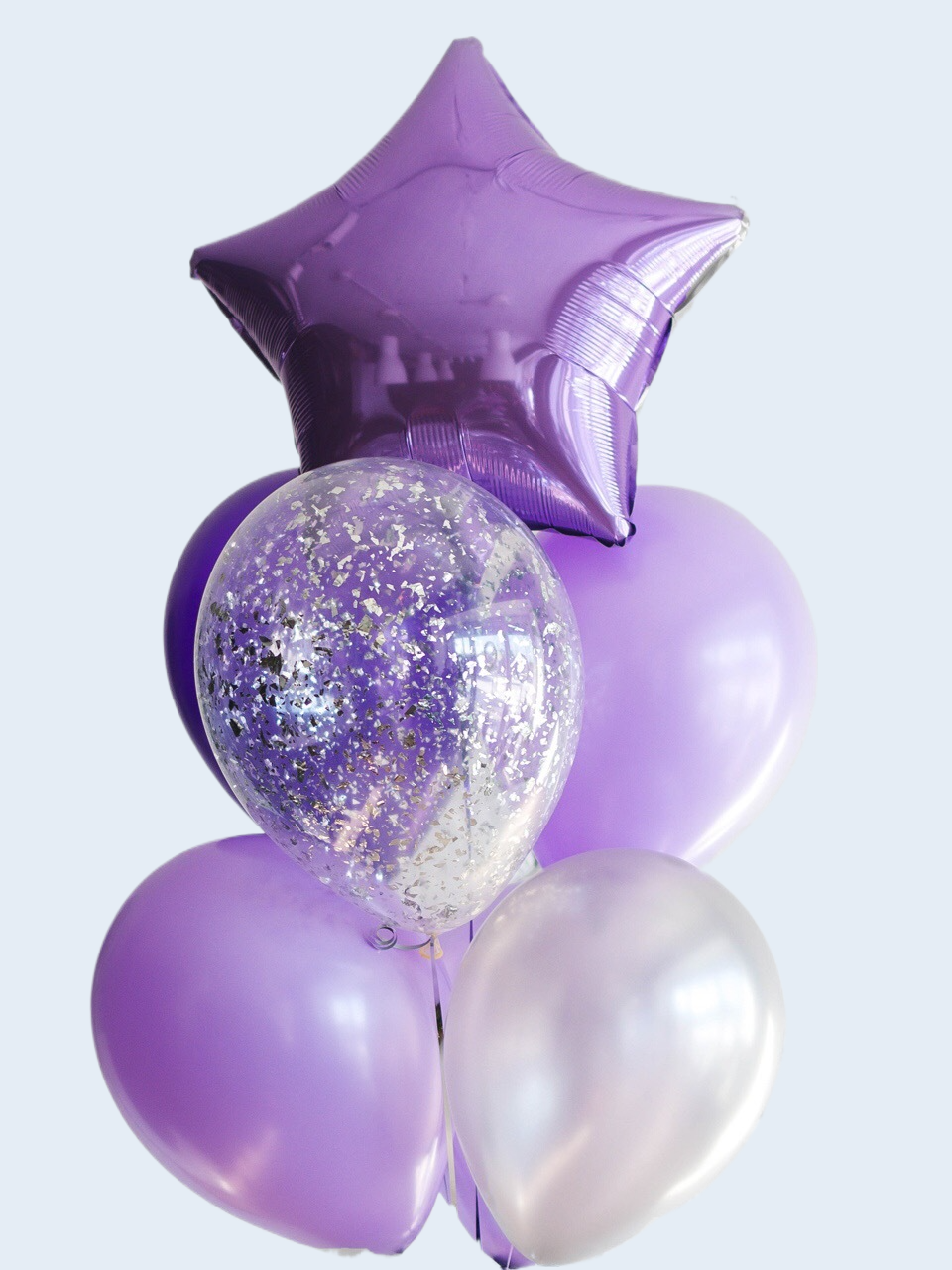 Фиолетовый фонтан из шаров 7 штук со звездой