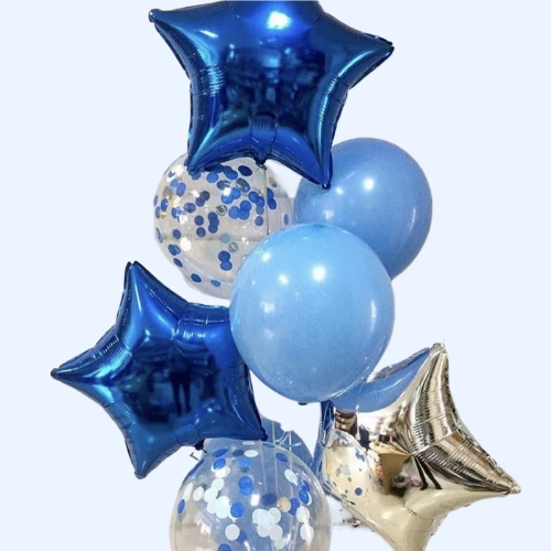 Синий фонтан из шаров 7 штук для мальчика со звездами