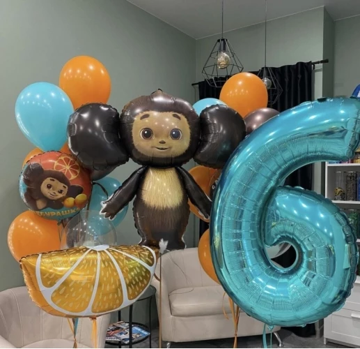 - Фольгированная фигура чебурашка и апельсин 2 шт;
