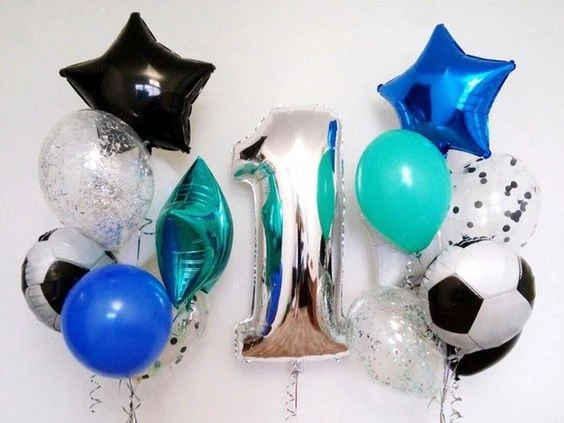Фольгированная шарики 4 шт,  футбольные мячы 2шт  и  цифра на ваш выбор.