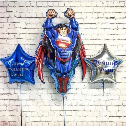 Готовое решение «Супермен спешит на помощь» для мальчика в интернет-магазине OCEAN BALLOONS. Заказать с доставкой! Тел.: +7 (495) 773-43-75.