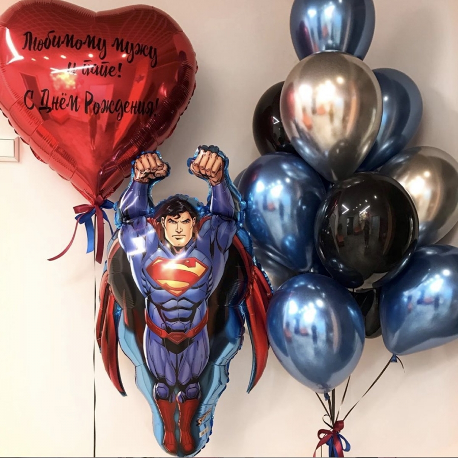 Готовое решение «Супермен в полете» в интернет-магазине OCEAN BALLOONS. Заказать с доставкой! Тел.: +7 (495) 773-43-75.