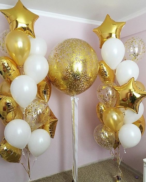 Готовое решение «Золотое и белое» в интернет-магазине OCEAN BALLOONS. Заказать с доставкой! Тел.: +7 (495) 773-43-75.