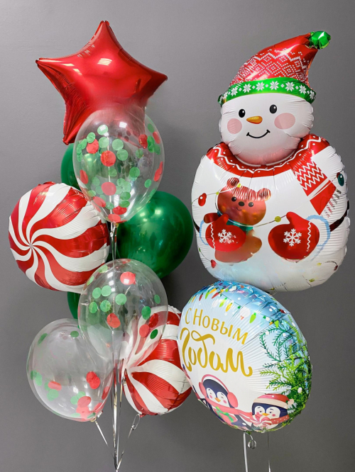 Композиция «Новогодний снеговик» в интернет-магазине OCEAN BALLOONS. Заказать с доставкой! Тел.: +7 (495) 773-43-75.