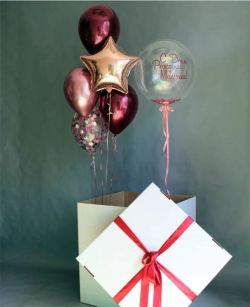 Коробка с шарами «Бордовая звезда» в интернет-магазине OCEAN BALLOONS. Заказать с доставкой! Тел.: +7 (495) 773-43-75.