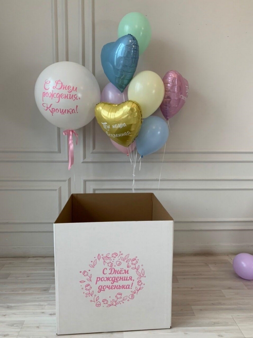 | Тип: | С индивидуальной надписью, Шары в коробке, Коробки с шарами на день рождения, Коробка с шарами для девочки |