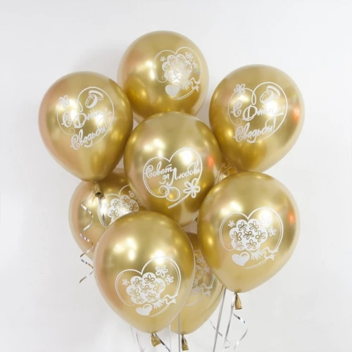 Воздушный шар С Днем Свадьбы, Совет да Любовь!, Золото, хром