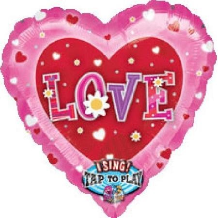 Шар в виде сердечка с максимальным диаметром 32см, в который встроен музыкальный блок-синтезатор. Если надавить на указанный участок фольгированного сердца, оно проигрывает записанную мелодию. Увеличение громкости мелодии предусмотрено за счет объема самого шарика, стенки которой резонируют и делают звук слышным. Шар-сердце завернут производителем в упаковку с фотографией, поэтому его удобно выставлять на витрину в ненадутом виде.