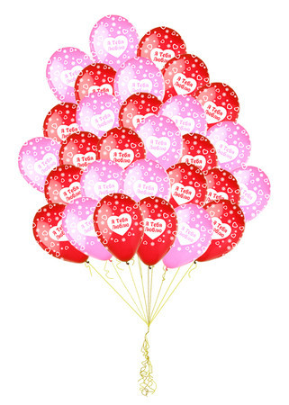 Облако из 20 цветных латексных шаров, принтованных надписью Я люблю тебя.