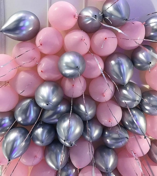 Гелиевые шары под потолок Хром с розовым в интернет-магазине OCEAN BALLOONS. Заказать с доставкой! Тел.: +7 (495) 773-43-75.