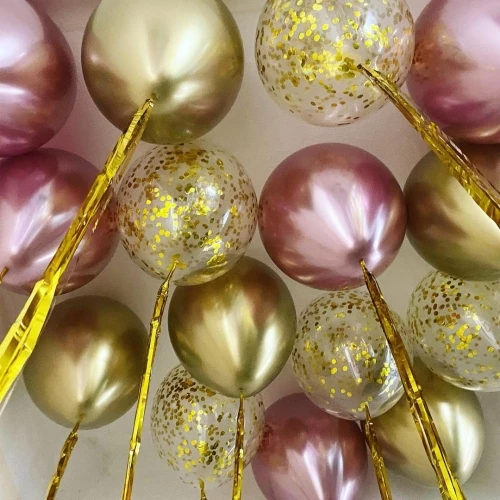 | Группа: | Шарики хром золотой розовый и шарики с конфетти золото с дождиками |