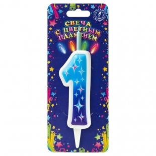 Свеча-цифра 1 с цветным пламенем в интернет-магазине OCEAN BALLOONS. Заказать с доставкой! Тел.: +7 (495) 773-43-75.