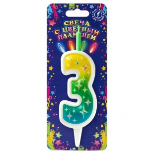 Свеча-цифра 3 с цветным пламенем