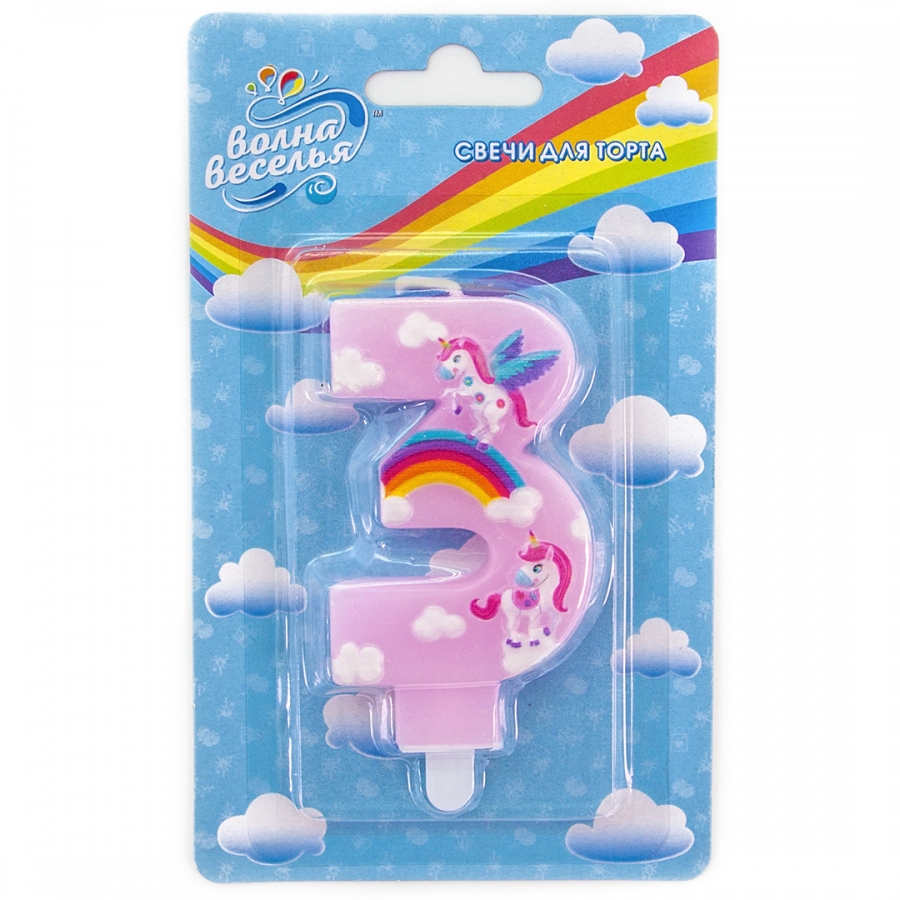Свеча Цифра, 3 Волшебные единороги, Розовый, 9 см в интернет-магазине OCEAN BALLOONS. Заказать с доставкой! Тел.: +7 (495) 773-43-75.