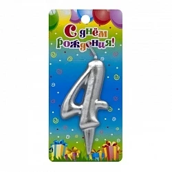Свеча цифра 4 серебро в интернет-магазине OCEAN BALLOONS. Заказать с доставкой! Тел.: +7 (495) 773-43-75.